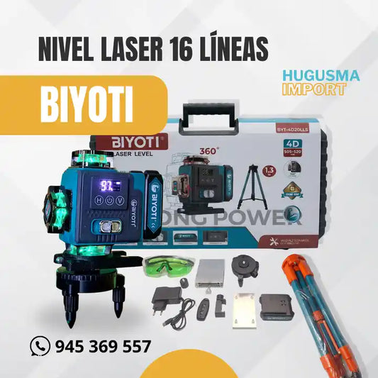 Nivel Laser de 16 Líneas con Pantalla Digital + Trípode de 1.30 de la Marca Biyoti